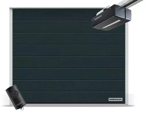 Hörmann 2500x2250, RAL7016, Woodgrain, M bordás, Promatic 4 motor, FS10 M közepes sínnel
